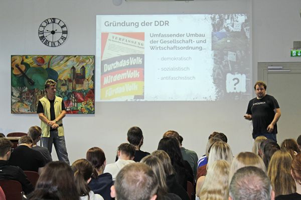 Am Donnerstag, 12.09.2024, diskutierten rund 90 SchülerInnen der 11. und 12. Klassen des BGY über die Freiheitsrechte der Bundesrepublik Deutschland. Das Themenfeld „Proteste & Aufstände“ wurde aus unterschiedlichen (historischen) Perspektiven betrachtet und in aktuellen Diskussionen verortet. Als Grundlage für die Diskussion dienten eine interaktive Präsentation mit ModeratorInnen von Multivision e.V. und ein persönlicher Bericht von einem Zeitzeugen aus diktatorischem Regime. An der abschließenden Podiumsdiskussion nahmen VertreterInnen aus Politik und Zivilgesellschaft teil. Gefördert wurde der Projekttag von der Bundesstiftung zur Aufarbeitung der SED-Diktatur. Mit folgenden Fragen setzten sich unsere SchülerInnen u.a. auseinander: