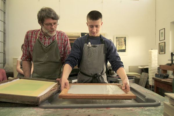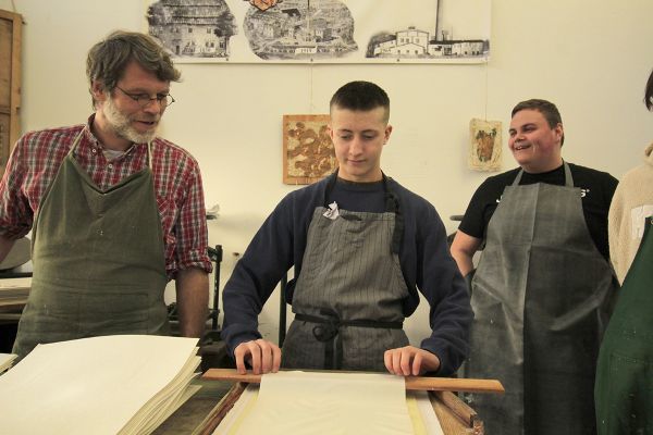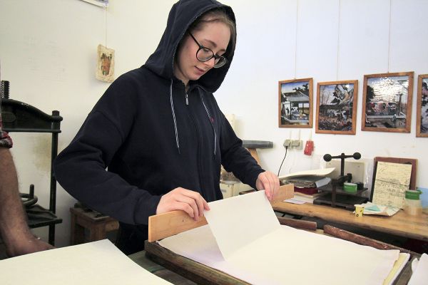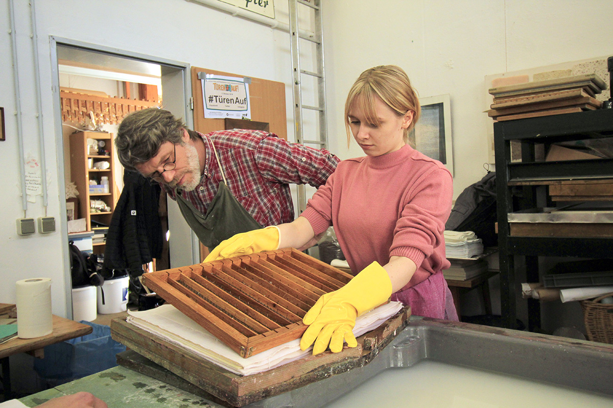 Nach einer kurzen Pause konnten wir die Blätter eins nach dem anderen vorsichtig vom Filz lösen. Diese mussten noch etwas trocknen und dann gepresst werden ehe wir sie einige Tage später überreicht bekamen.